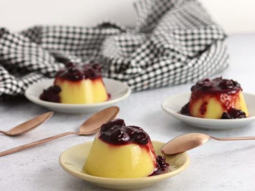 Panacota de mango y arándanos